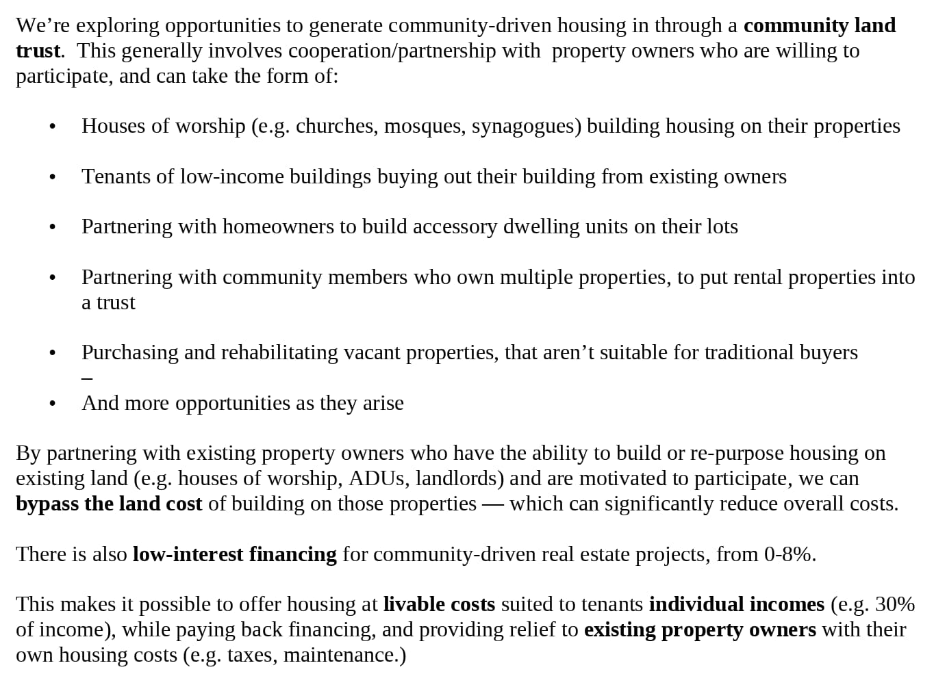 We're looking for investment (principal re-payment, catalytic capital) and grants (storytelling and education) to catalyze this work, as well as program-related partners.